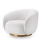 Sen runsas muotoilu ja pyöristetty siluetti tekevät siitä nopeasti suosikin sekä olohuoneeseen että loungeen. Harjattu messinkivärinen pyörivä jalka antaa hienostuneen ilmeen ja helpottaa tuolin kääntämistä ja huoneen seuraamista katseella. Yhdistä saman sarjan sohvaan saadaksesi yhtenäisen ja tyylikkään kokonaisuuden.